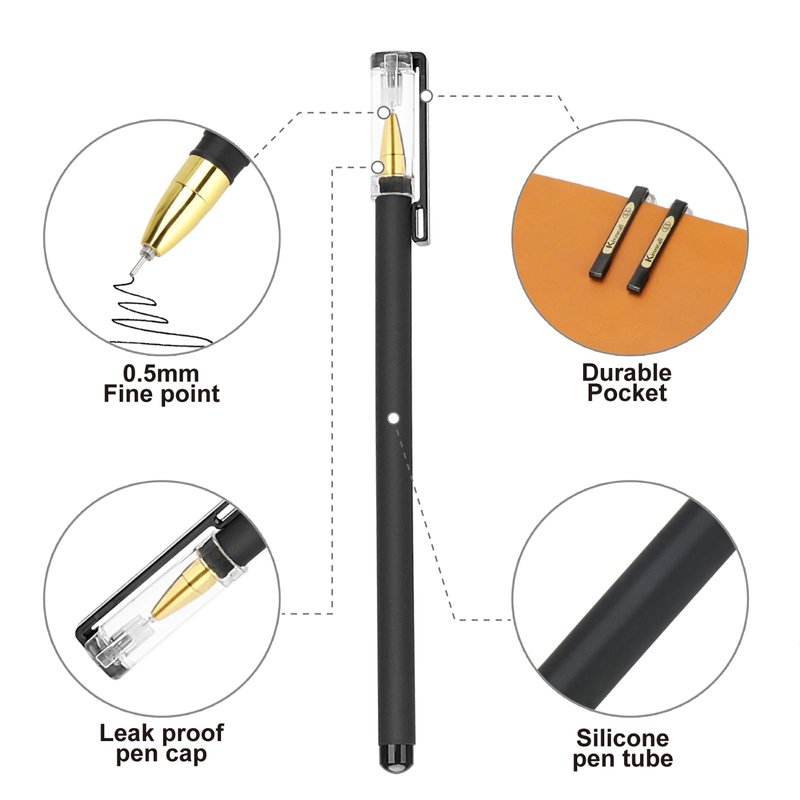 - School/Office Supplies: This set of 10 pens with 0.5mm tips provides a black ink writing tool suitable for students, professionals, and anyone who appreciates elegant stationery. Fine point pen are perfect for use in notebooks, diaries, note-taking, and planning.