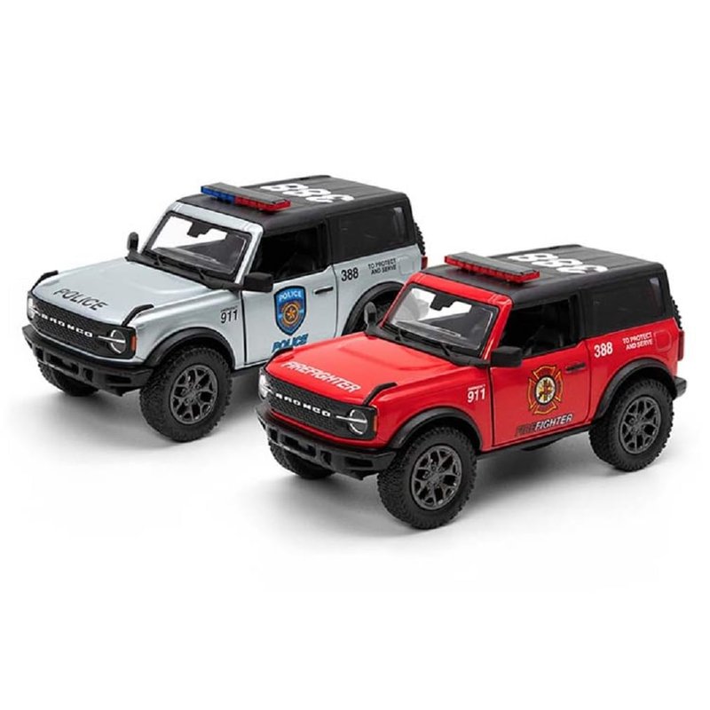 KiNSMART 2022 Ford Bronco Police & Fire Editions 2Set 5" 1:34 Scale Die Cast Metal Model Toy Trucks