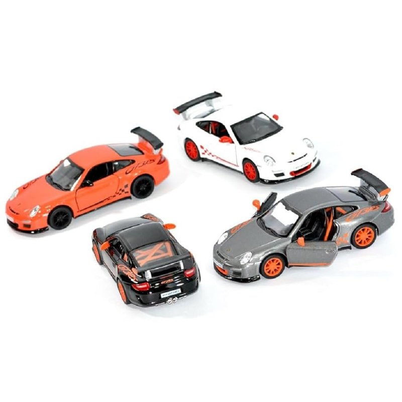 KiNSMART Porsche 911 GT3 RS SetOf4 1:36 Scale 5" Die Cast Model Toy Super Sports Car White/Orange/Silver/Black
