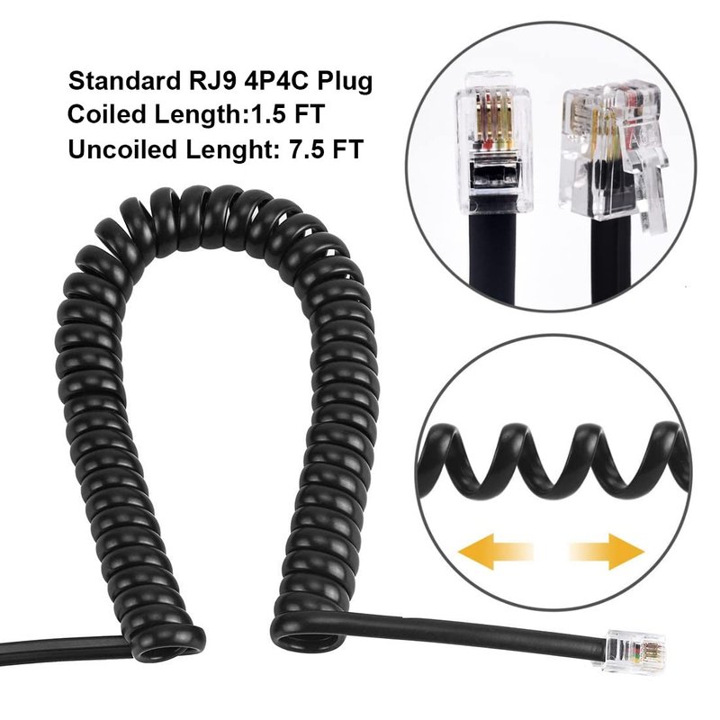 - Telephone handset cord - The telephone landline cord cable used between handset and telephone, not from telephone to wall plug; Coiled length: 1.1 Feet to 7 Feet. Universally Compatible with all telephones which feature a RJ9/RJ10/RJ22 (4P4C) jack manufacturers including AT&T, Cisco, NEC, Rolm, ITT, & Tie.