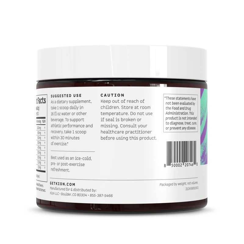 Whether you're looking to stimulate faster muscle growth, recover more rapidly from exercise, become more resistant to fatigue during a grueling workout, or just benefit from additional amino acids in their most absorbable form to support aging or a vegan, vegetarian, or ketosis diet, Kion Aminos essential amino acids (EAAs) has you covered. EAAs are just that: essential. Your body can't produce them on its own and yet they are crucial for supporting and maintaining the muscular, skeletal, enzymatic, nervous and hormonal systems of the body. All of these systems need to be running optimally to get to sleep faster, promote muscle synthesis, enhance recovery from exercise, improve cognition, support your immune system, digest better, and much more. Kion Aminos contains the muscle building branched chain amino acids (BCAAs) so that you get all of their benefits without risking an amino acid imbalance. The amino acid utilization is 99%, meaning your body is actually absorbing and utilizing the EAAs it needs. Plus, Kion Aminos are formulated in the exact, scientifically validated proportions needed for maximum utilization and absorbed by the body within 20 minutes. So if you're running from the gym, in need of a quick energy boost, staving off hunger pangs, or in the middle of a long workout, you can easily give your body the support it needs - fast. Kion Aminos contains: Tryptophan, Lysine, Methionine, Valine, Leucine, Isoleucine, Threonine & Phenylalanine and comes in a delicious mixed berry flavor that is 100% natural and sugar-free. The included 5 gram scoop allows you to easily portion your serving that dissolves easily in liquid. As a dietary supplement, take 5 grams of Kion Aminos daily. As an exercise aid, take 5 grams 30 minutes prior to physical activity and repeat every two hours of exercise. For maximum absorption, take 20 minutes before or 1-2 hours after other dietary protein and fat.