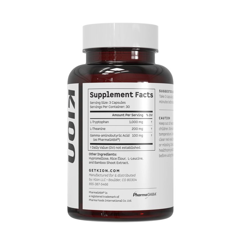 Energy for Life Starts With Your Sleep Your best days begin with a good night’s sleep. If difficulty falling asleep or staying asleep, or tossing and turning are part of your nightly sleep experience, your body is missing out on the rest and recovery it needs Sleep latency (how long it takes you to fall asleep), duration (the length of time you’re asleep throughout the night), and restfulness (the quality of your sleep) are the three most important factors that contribute to a good night’s sleep. And each of these factors is affected by two key neurotransmitters: GABA and serotonin. Kion Sleep naturally supports your GABA and serotonin function with three amino acids that work with your body’s own sleep system to promote a deep, restful slumber: Gamma-aminobutyric Acid (as PharmaGABA) reduces stress, promotes relaxation, and improves the quality of your sleep. L-theanine elevates levels of the neurotransmitters GABA, serotonin, and dopamine. Increasing levels of these calming brain chemicals promotes relaxation and can help with sleep. L-Tryptophan is converted to the sleep-regulating neurotransmitter 5-hydroxytryptophan (5-HTP), which then works to increase levels of the calming neurotransmitter serotonin, as well as the sleep-signaling hormone melatonin. When taken together, these three amino acids work naturally in your body to give you a deeper, more restful night’s sleep.