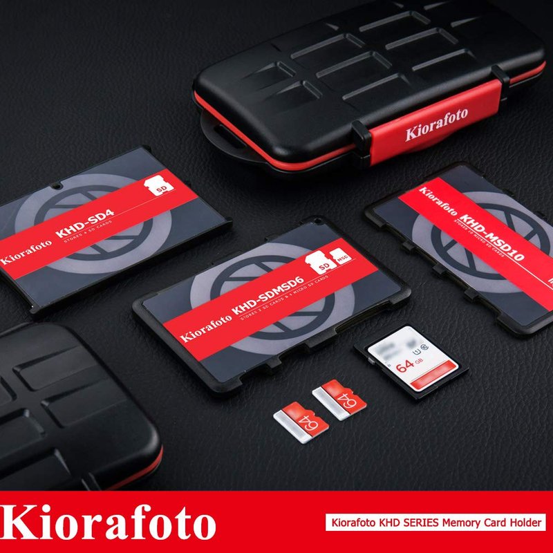 Kiorafoto KHD-MSD10 Memory Card Holders features several individual slots to store your memory cards, which prevents your memory cards from dust and loss. Made of ABS, the holder is lightweight and portable. With compact design, the holder is credit card size. In addition, a hole is provided so you can attach the holder to your keychain. The holder keeps the card securely while allows you to store and remove it with your finger easily. There are memory card patterns on the back of the holder, ensuring that the memory cards are inserted rightly. What's more, the patterns can be marked and noted in case that you mix your memory cards.