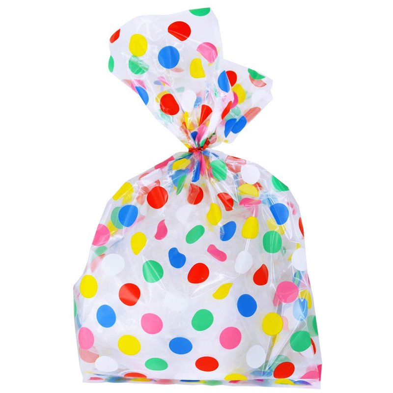 Kipp Brothers Pack of 24 Plastic Printed Goody Bags with Twist Ties, Food Safe - Polka Dot