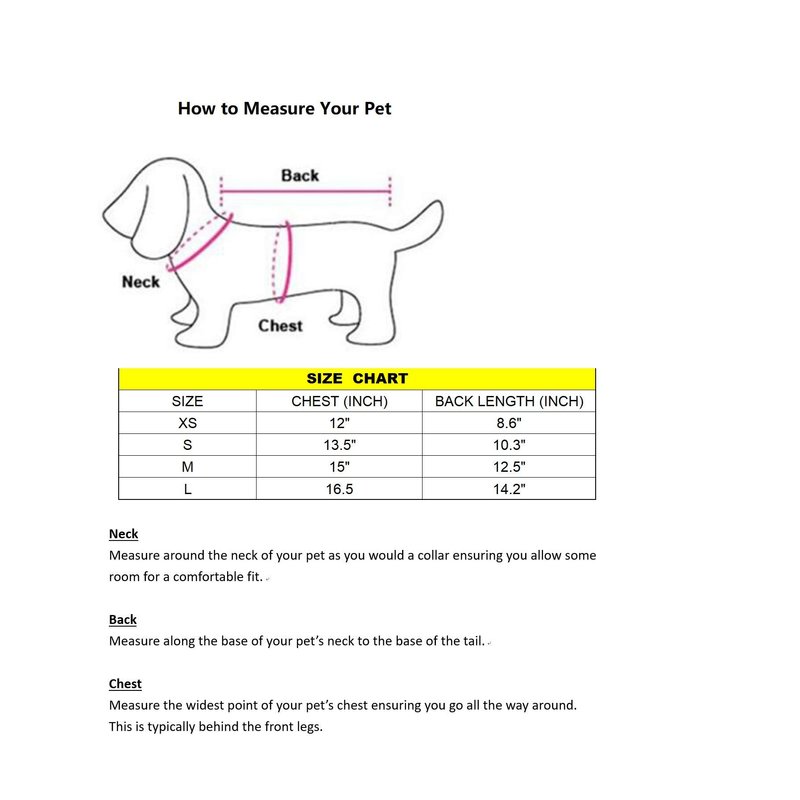 - [S] Length 10.3 inch , Bust Circumference 13.5 inch. Fits for Yorkie, Toy Poodle, Chihuahua, Maltese