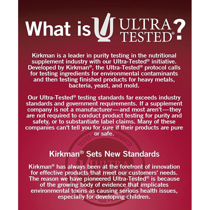 - PURE QUALITY: Kirkman Ultra Tested standards far exceed industry standards and government requirements.*