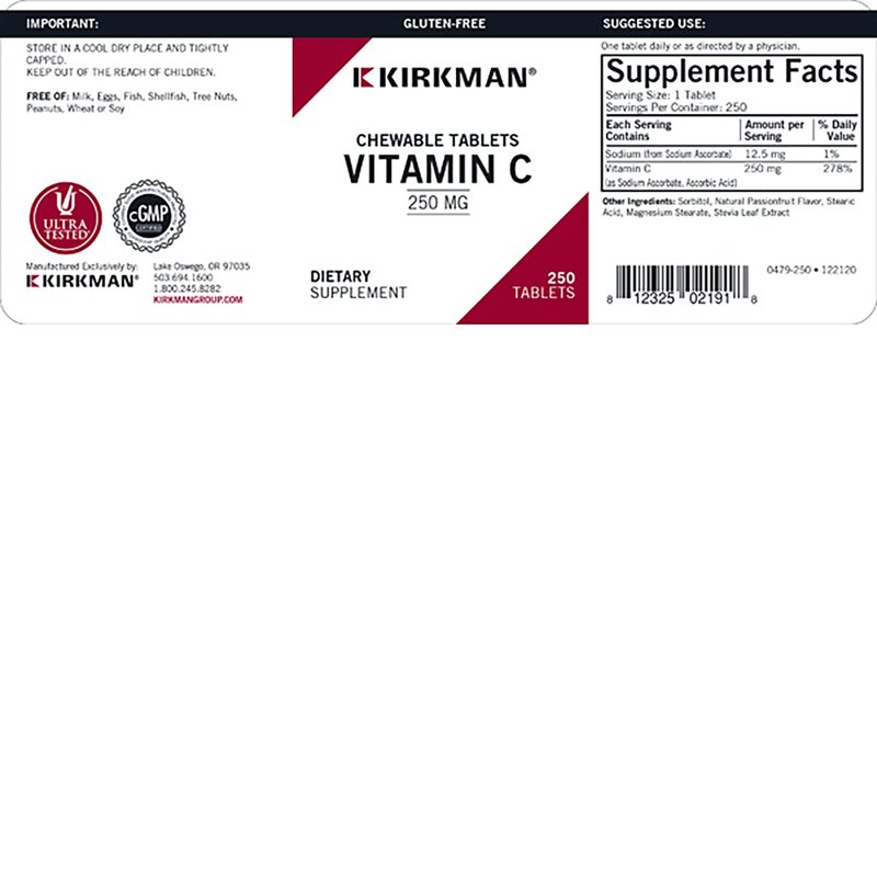 Kirkman Labs Vitamin C 250 mg Chewable Tablets with Stevia-250 Count
