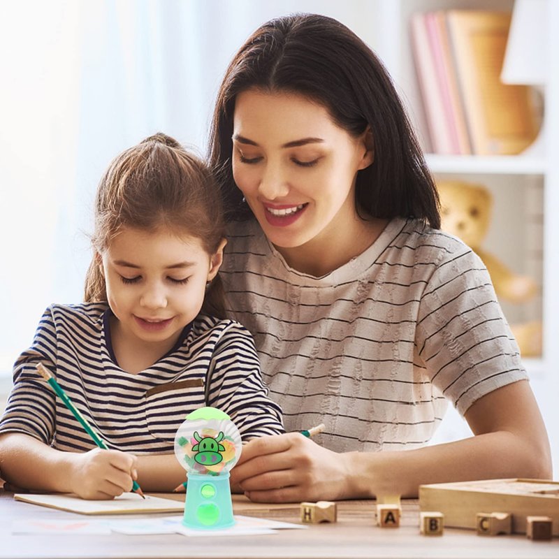 - Mini Rainbow Cartoon Rubber Eraser Capsule Toy Gumball Machine--will love taking them apart and play, and the erasers can be good stationery to erase pencil marks