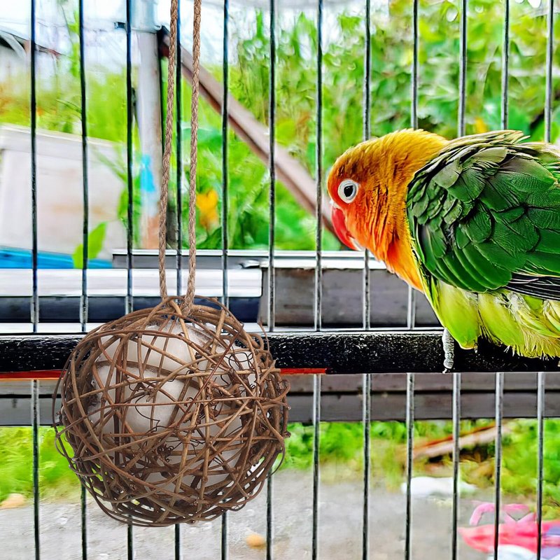 Introducing the sepak takraw ball, a bird toy. Made of natural rattan material, this bird toy is safe and pet-friendly. Each sepak takraw ball is carefully handcrafted to create a unique and beautiful design that is sure to capture your bird's attention.