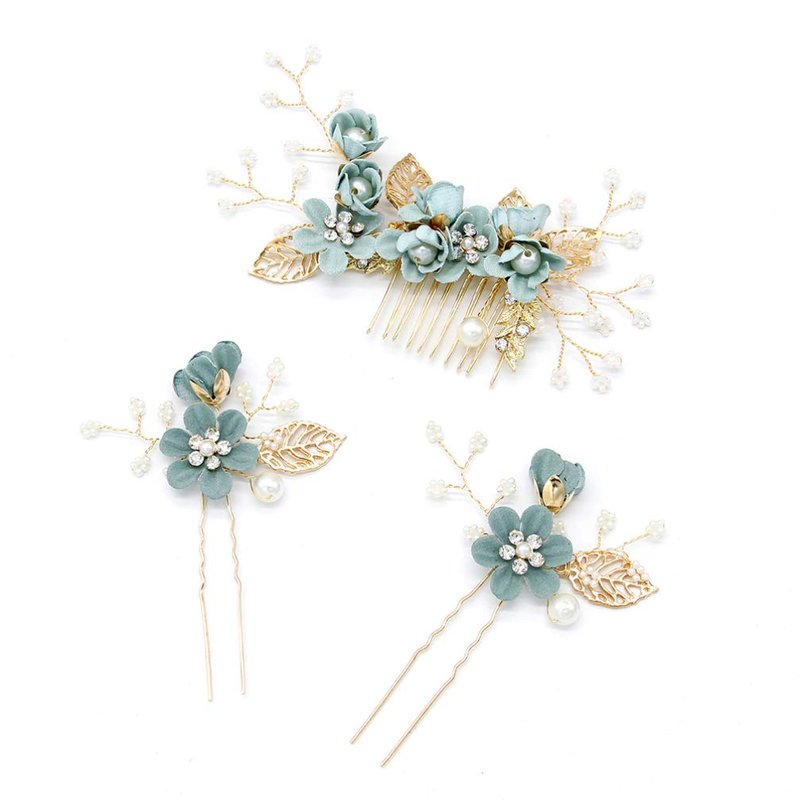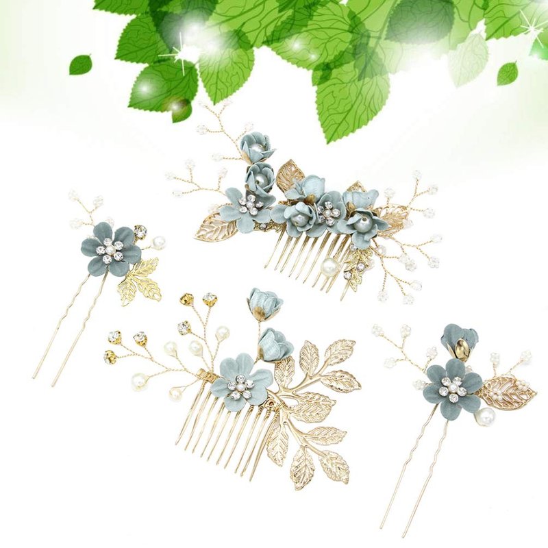 Kisangel 4pcs pearl floral leaf hair accessories Wedding Hair Comb Flower Hair Comb Set Rhinestone Pearl Hair Clips Wedding Hair Accessories for floral hair clip Brides bridal hair comb (Green)