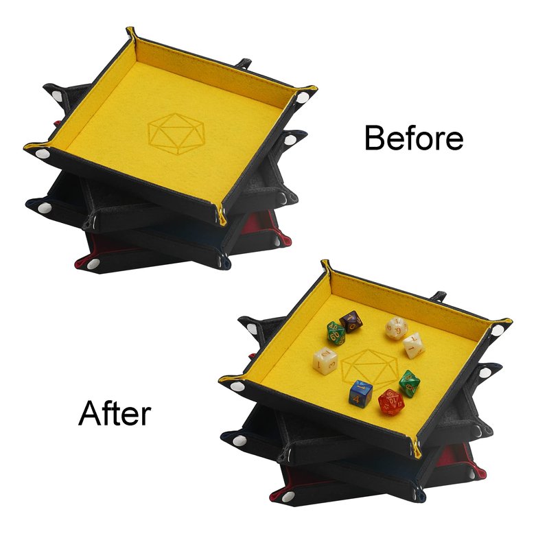 - Dimensions: Unfold:8’’ x 8’’; Folding:7’’ x 7’’ x 1’’, This portable dice tray for DND, RPG includes 4 pieces with different colors for you.