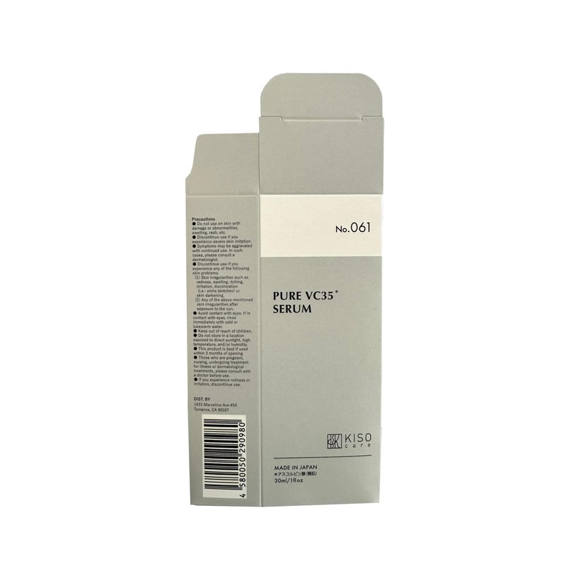 KisoCare Pure Vitamin C 35% Made in Japan Pure Vitamin C - Quickly Absorbed by the Skin Serum containing 35% Pure Vitamin C Pure Essence PV35 Paraben-free / Synthetic fragrance-free / Artificial coloring-free / Silicon-free / Petroleum-based alcohol-free / Petroleum-based surfactant-free / Mineral oil-free / UV absorber-free Made in Japan Suitable for the following concerns: ✔︎ Age-related skin problems ✔︎ Damage from UV exposure ✔︎ Skin needing a high concentration of Vitamin C ✔︎ Problems with skin texture ✔︎ Skin that doesn't hold make-up well