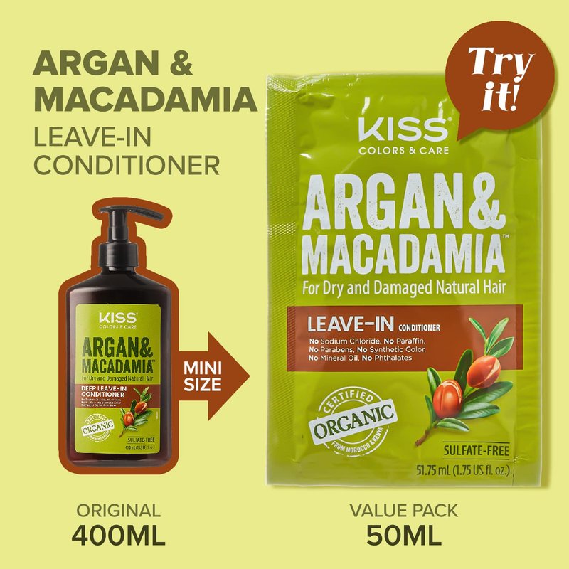 KISS Color & Care Argan & Macadamia For Dry and Damaged Natural Hair 3 Pack Leave-In Conditioner Bundle