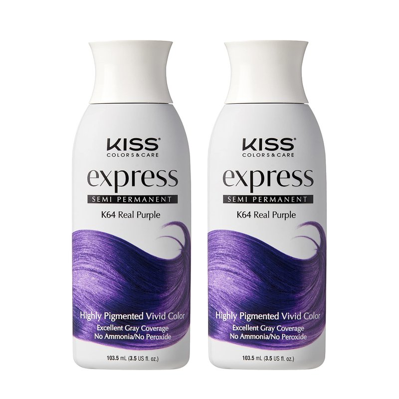 Kiss Express Semi-Permanent Hair Color 100mL (3.5 US fl.oz) (2 PACK, Real Purple)