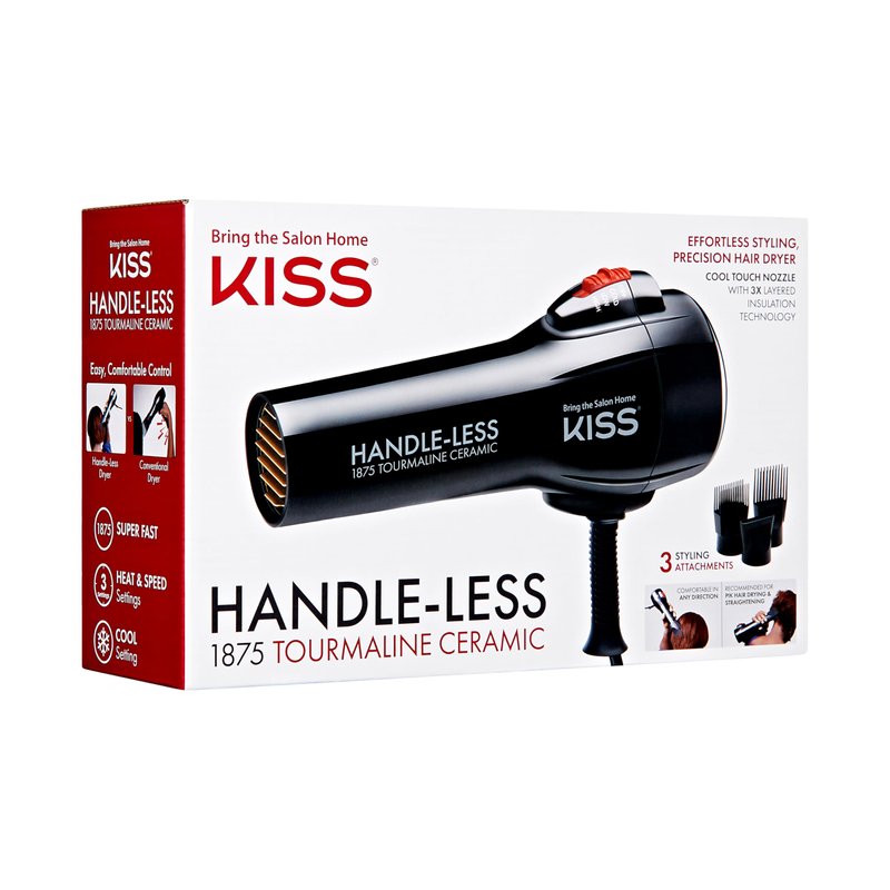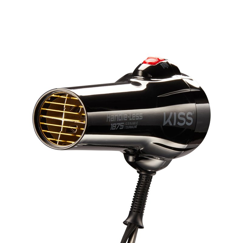 KISS Handle-Less 1875W Ceramic Tourmaline Hair Dryer, Effortless Styling Precision Blow Dryer, Cool Touch Nozzle, Triple-Layer Heat Insulation, Heat Resistant Cap, 3 Styling Attachments, Up to 450°F