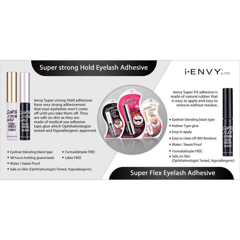 - i-ENVY Super Strong Hold adhesives make the lashes last as long as you do.