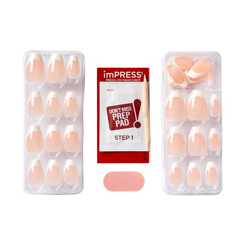 - Fancy a New French: Say “oui” to the NO GLUE needed imPRESS Press-On French Manicure. With our New Improved Adhesive, these press-on nails are long-lasting with a secure hold that lasts for up to 7 days. Just Peel, Press & Go!