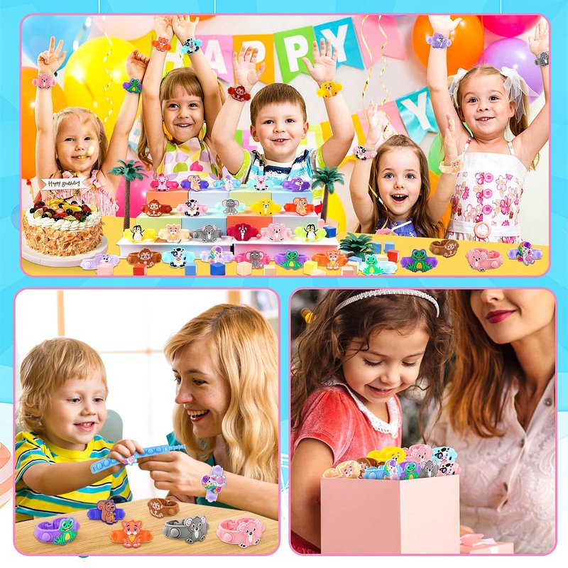 - 【Party Favors】These animal pop bracelets pack are perfect for kids who love animals. Cute animal pop bracelets is perfect for party favors,party favors for kids 4-8,party favors for kids 8-12,pinata stuffers,goodie bags stuffers,birthday party favors,school classroom rewards,treasure chest prizes,class prizes elementary,carnival prizes,valentines day gifts for kids classroom,easter egg fillers.