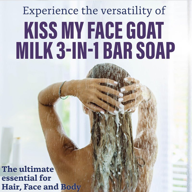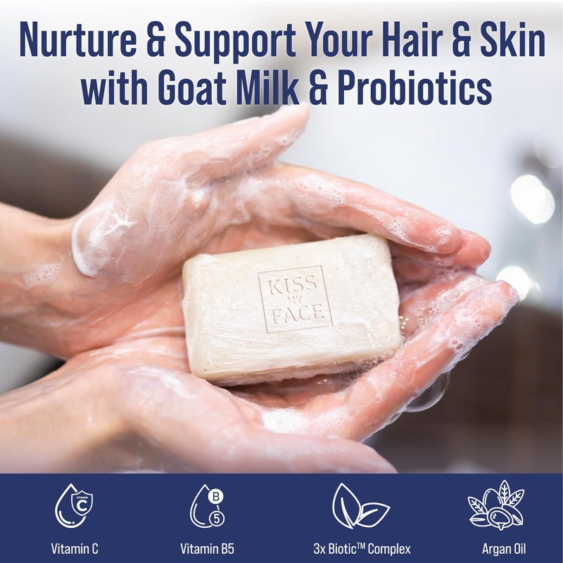 - Wash your hair, cleanse your face, and clean your body with just one bar! Our probiotic 3-in-1 bar soap boasts nourishing goat milk, shea butter, and coconut oil to balance, moisturize, and cleanse the hair, face, and body