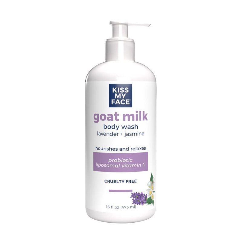 Kiss My Face Goat Milk Body Wash - Lavender & Jasmine Body Wash with Goat Milk and Argan Oil – 16 Ounce Bottle (Lavender & Jasmine, Pack of 1)