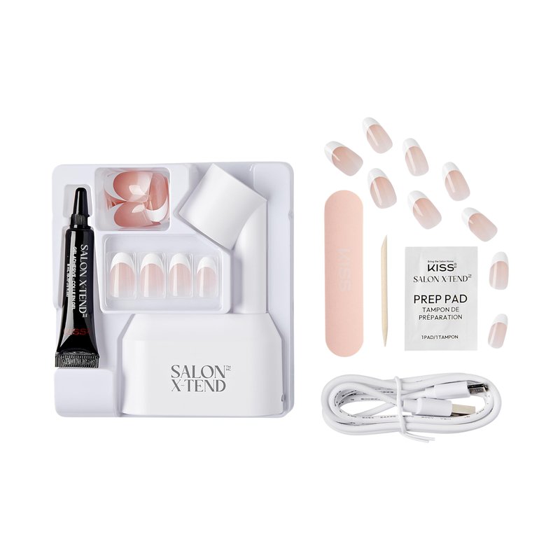 KISS Salon X-tend, Press-On Nails, Nail glue included, Pure', Light White, Medium Size, Oval Shape, Includes 30 Nails, 5Ml Led Soft Gel Adhesive, 1 Led Lamp, 1 Prep Pad, 1 Manicure Stick, 1 Mini File