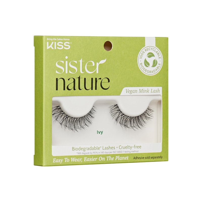KISS Sister Nature Vegan, False Eyelashes, 'Ivy', 14 mm, Includes 1 Pair Of Lash, Contact Lens Friendly, Easy to Apply, Reusable Strip Lashes