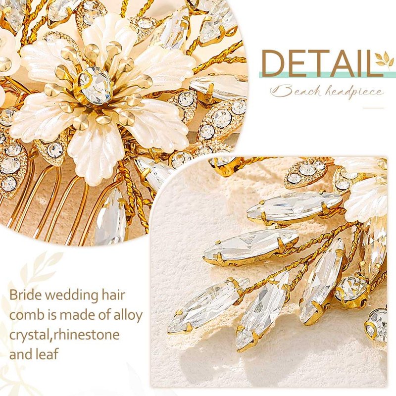 Kisshine Flower Bride Wedding Hair Comb Gold Rhinestone Headpiece Bridal Crystal Leaf Hair Accessories for Women and Girls