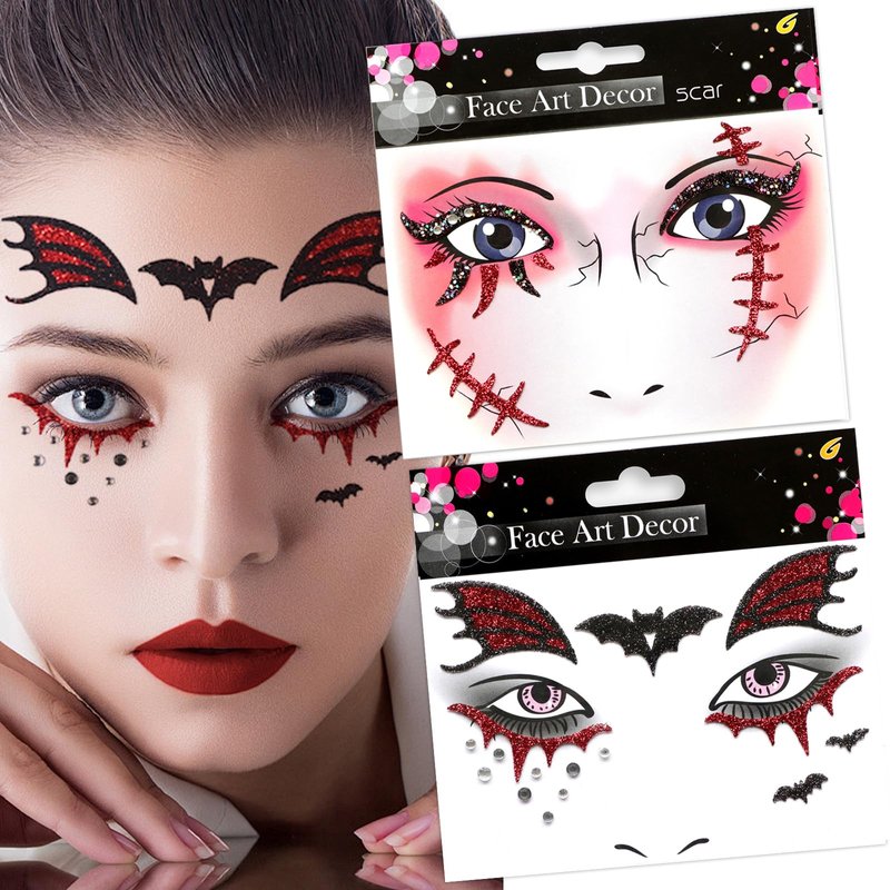 - Package Content: You will receive 1pcs bat face tattoos and 1pcs scar face tattoos, with eye-catching patterns and different shapes that sparkling, adding more fun to Halloween role-playing and other themed parties