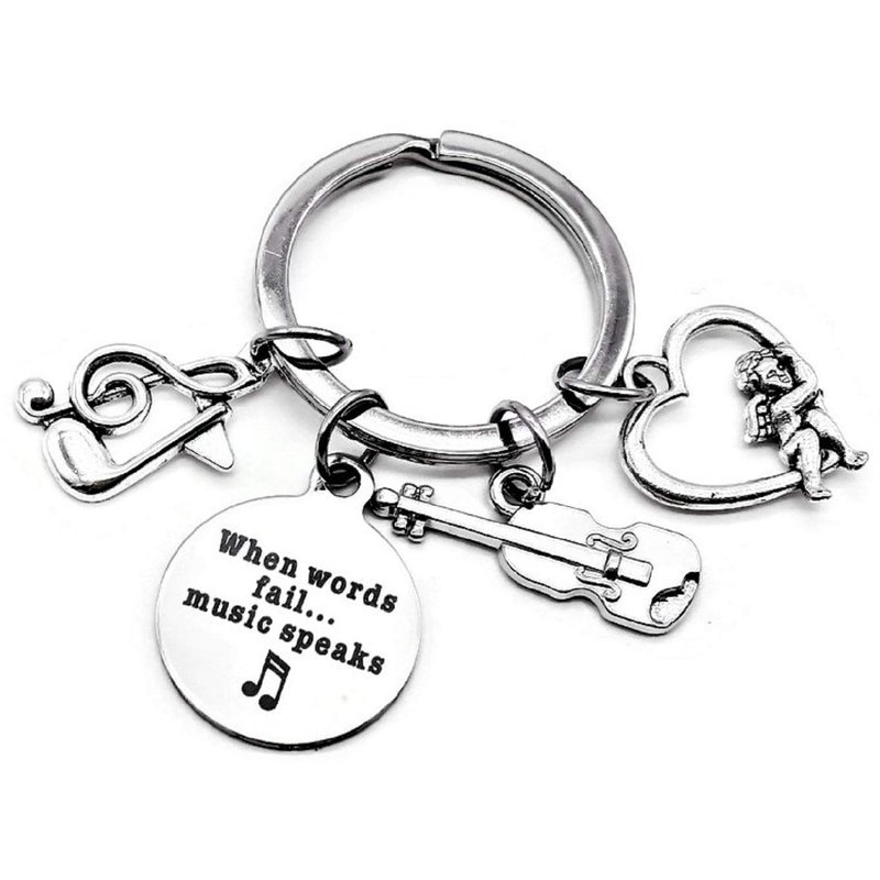 music Keychain, Violin Keychain, When Words Fail Music Speaks Keychain, Music Teacher Keychain, Musician Gift. Silver Tone Metal Charms, Zinc alloy