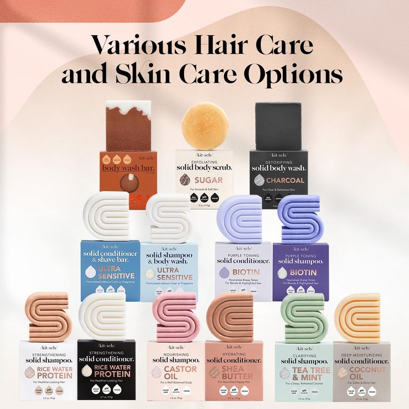 - NATURAL INGREDIENTS: Kitsch is known for making the best beauty bars. We care deeply about what goes in each bar and only use natural ingredients that are plant based with no Sulfates, Parabens, artificial fragrances or dyes! Our beauty products have been pH balanced so you can feel good about your hair and body every single day.