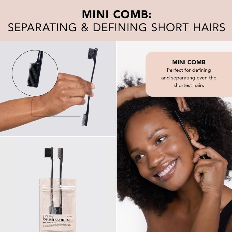 - CONTROLLED LOOK. Comfortable to use, the Kitsch Pro Dual-Edge Brush and Comb set is a great edge control brush for many hair types and textures, including straight, wavy, relaxed, treated or fine. This unique 2-in-1 edge brush teasing set keeps the hairline smooth and flyaways at bay, ensuring you have a controlled and relaxed look for that important business meeting or special celebration.
