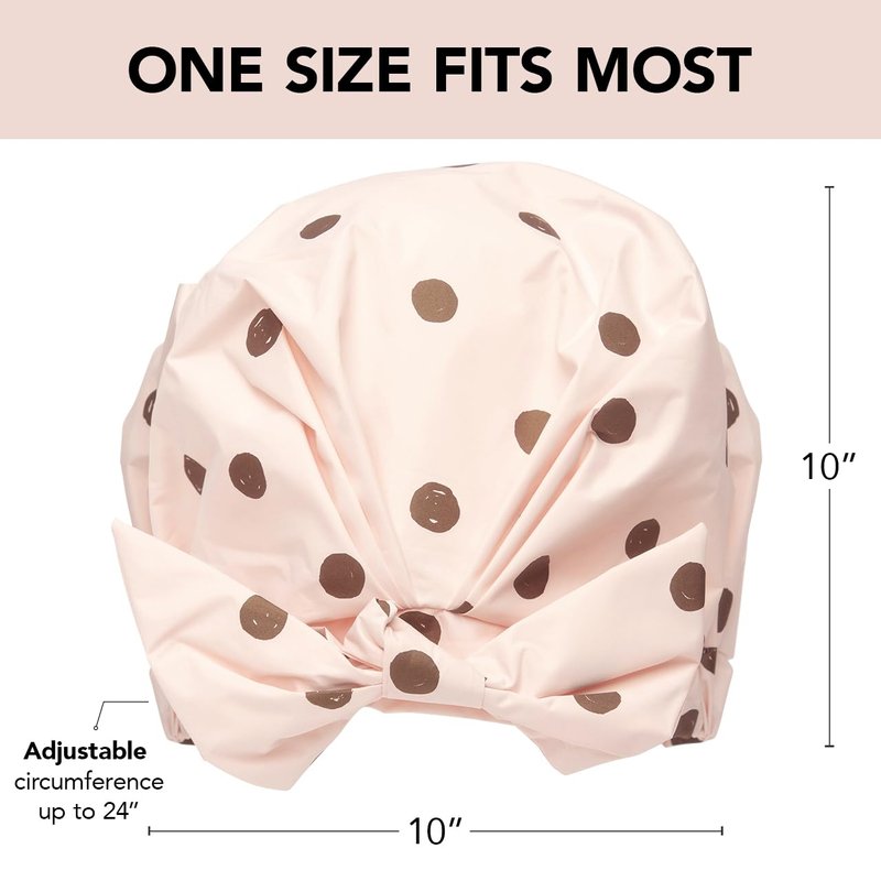 Kitsch Luxury Shower Cap for Women Waterproof - Reusable Shower Cap | Hair Cap for Shower | Waterproof Hair Shower Caps for Long Hair | Non-Slip Cute Shower Cap One Size | Shower Bonnet - Blush Dot