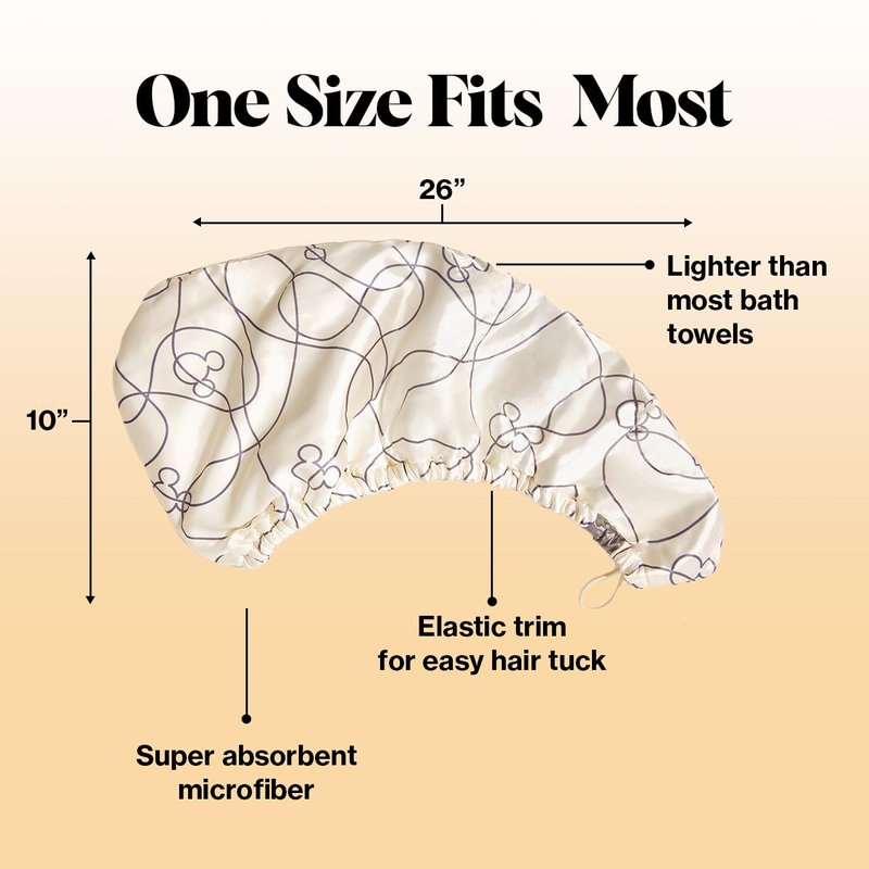 Satin-Wrapped Hair Towel – Mickey Maze (Cream) Step out of the shower in style with this chic Satin-Wrapped Hair Towel in the playful Mickey Maze design. Made from soft, eco-friendly materials, this hair towel is gentle on your skin and hair while being kind to the environment. Its absorbent fabric quickly dries your hair, reducing frizz and promoting healthy, smooth locks. Designed for convenience, the quick twist hair towel wrap secures your hair in place, offering a comfortable fit for effortless drying. Whether you're using it for a fast twist or leaving it on for longer drying, this towel is perfect for all hair types, including curly. The microfiber hair towels inside help absorb moisture fast, making it an ideal super absorbent hair towel wrap for women for busy mornings or nighttime routines. Perfect for women and girls, this hair plopping towel curly is versatile enough for everyday use, whether you're plopping curly hair, wrapping up wet hair after a shower, or simply preventing frizz. Its super absorbent properties and stylish design make it a must-have for anyone looking to combine luxury with functionality.