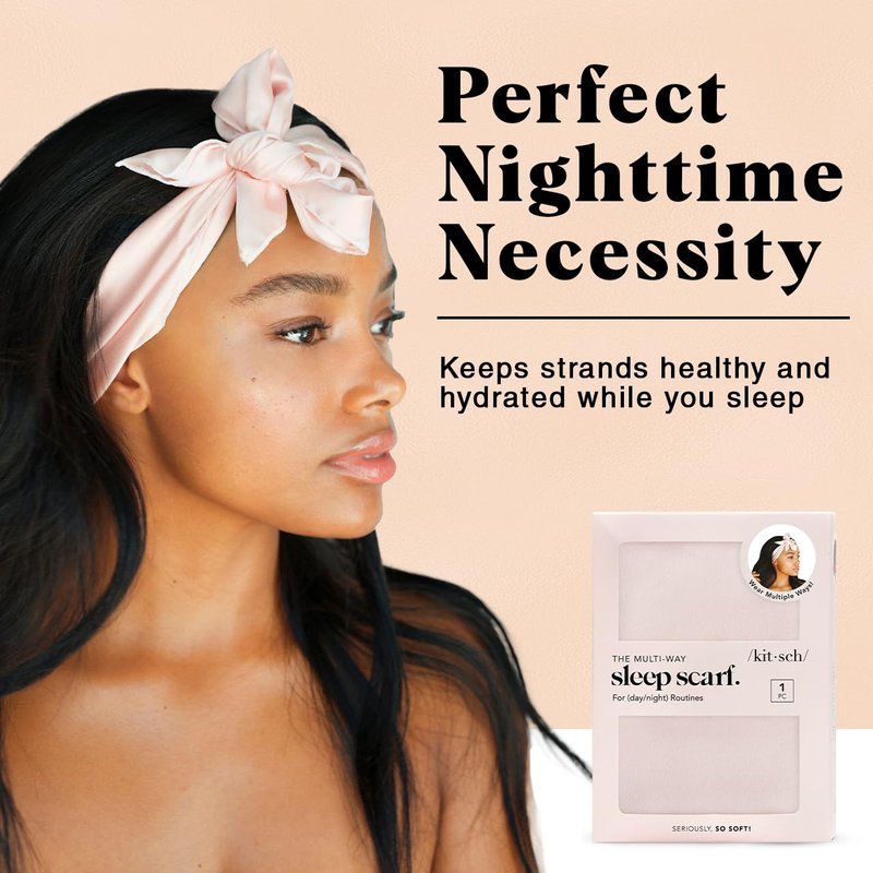 - OPTIMAL COMFORT: Elevate your beauty sleep with the Kitsch Satin Sleep Scarf for women. This hair bandana is crafted from 100% satin charmeuse, it's gentle on hair, reducing breakage, frizz, and keeping your locks luxuriously comfortable.