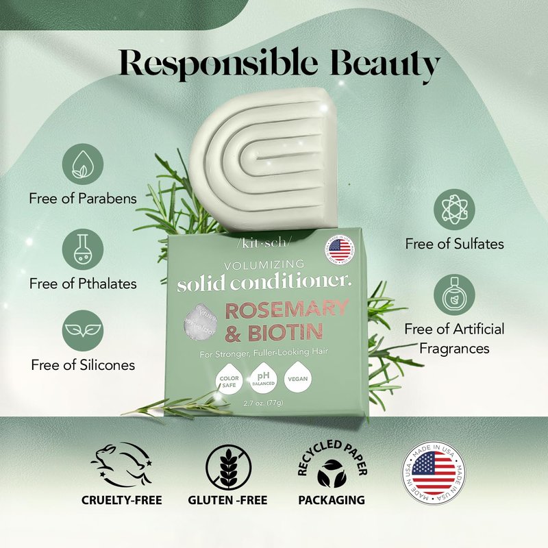 Choose the Kitsch Rosemary & Biotin Bar Hair Conditioner for a luxurious, eco-friendly, and effective hair care experience that nurtures your hair and the planet.