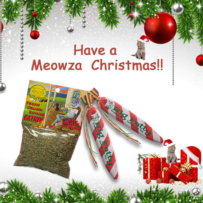 KittyWeed Big Fatty Catnip Toy Package Deal - Cat & Kitten Handmade Catnip Toys & Supplies - Two Christmas Big Fatty Catnip Toy Plus a Half Ounce Bag | Organic, Kosher & Super Potent Catnip