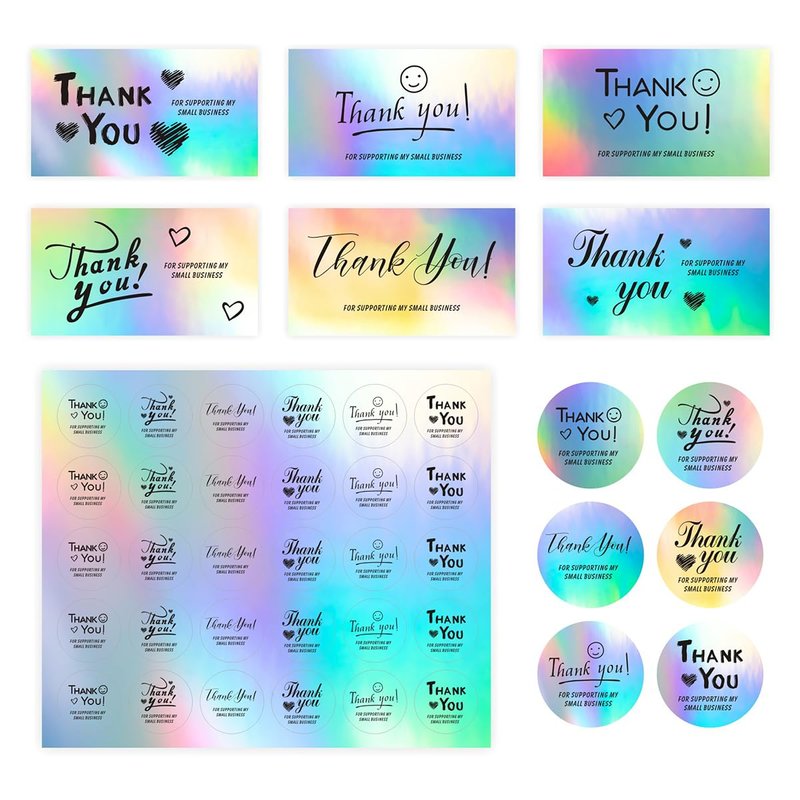 KIUKIUO 1020 PCS Thank You Cards and Stickers Set, Include 120 Thank You Holographic Business Card 900 Thank You Thank You for Supporting My Small Business Holographic Stickers