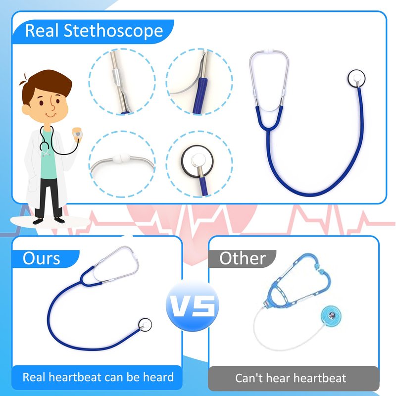 - REAL WORKING STETHOSCOPE - The stethoscope of this doctor costume set really does work! You can hear the heartbeat clearly with Kizzyland stethoscope. Made of durable tested materials, non-toxic and safe. It can be widely used as a toy and also can be used as an auxiliary teaching tool in kindergartens to help kids feel the beat of life.