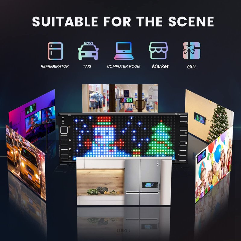 - 【Colorful Lighting】 The car LED sign adopts 2121 RGB lamp beads. This high-quality LED matrix panel can not only emit high-intensity light, but also with low power consumption, the full-color effect will be brighter and more attractive. Not only increases the lifespan of the LED matrix panel , but also achieves IP66 waterproofing.