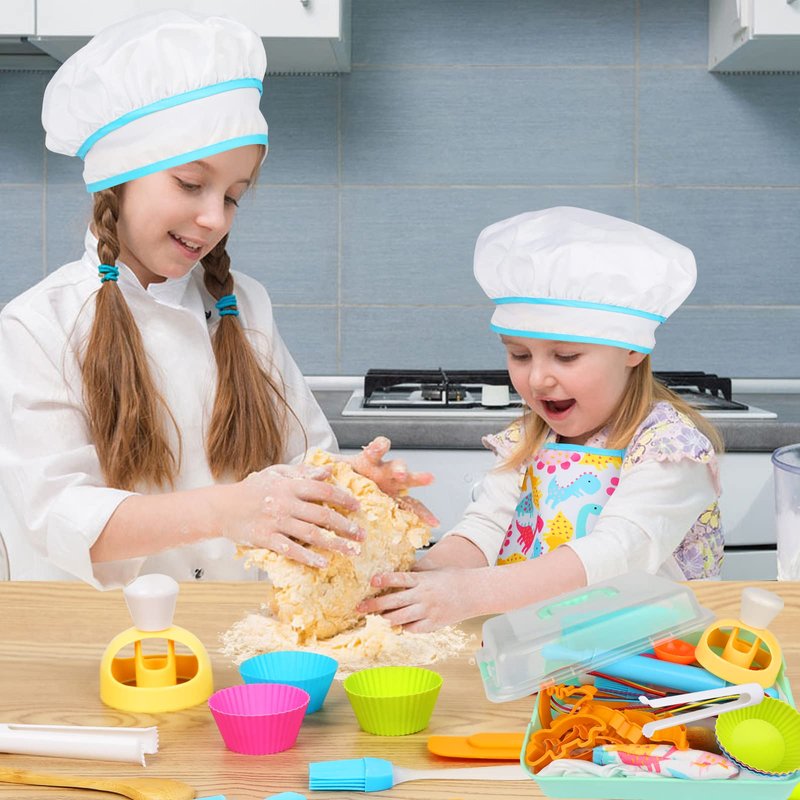 - 【IDEAL GIFT CHOICES】 Kkmon Cooking Set for kids perfect for the aspiring baker easy bake in home life or kindergarten. Specially, the kids baking Set equipped an Exquisite and Elegant plastic portable storage box, that will be Easy to Clean and Store. Idea presents for kids Christmas gift, Birthday gift, family party gift and give kids something enjoy.