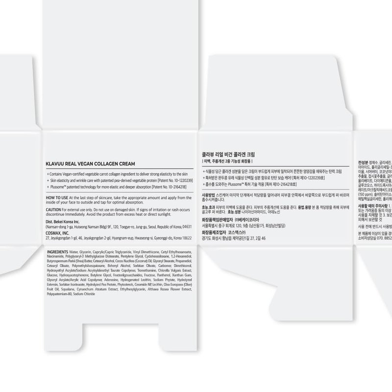 - Vegan Cosmetic: KLAVUU stands for cherishing all life forms. Our product is proudly 100% vegan and cruelty-free, offering superior skincare benefits while upholding uncompromising ethical standards. Experience the delight of guilt-free, conscious skincare with KLAVUU Real Vegan Collagen Cream.