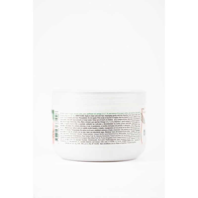 Super nourishing formula, provides stronger growth and prevents breakage. Contains Concentrated Natural Active Ingredients of oils rich in Argan, Almond, Olive, Corn and Sunflower, which provide Omega 3, 6, 7 and 9 and vitamin E, which ensures a repairing effect to the hair, and provides shine and softness, sealing the cuticles and restoring the essential fatty acids responsible for lubricity and naturalness. It contains no silicones, salt, parabens, petroleum oils or allergens. 100% Vegan and T.A.C.C. Free.