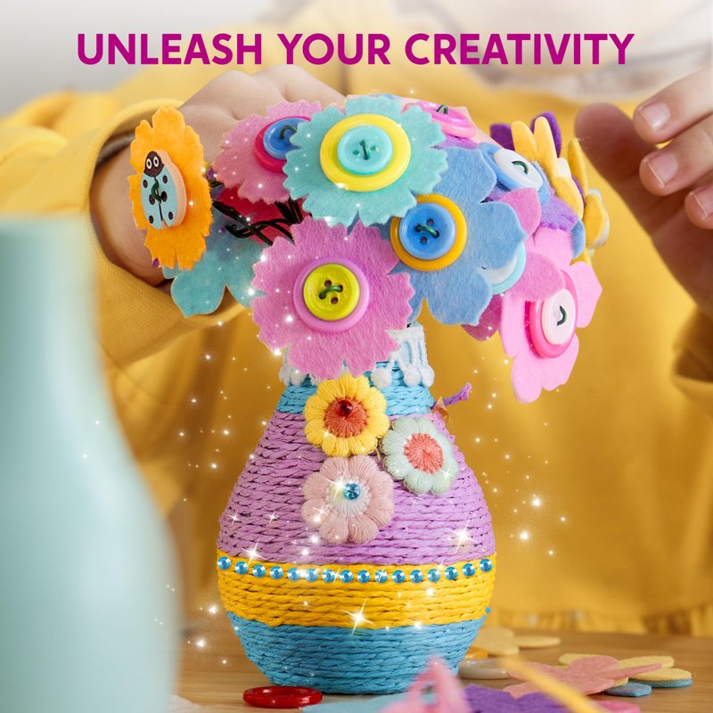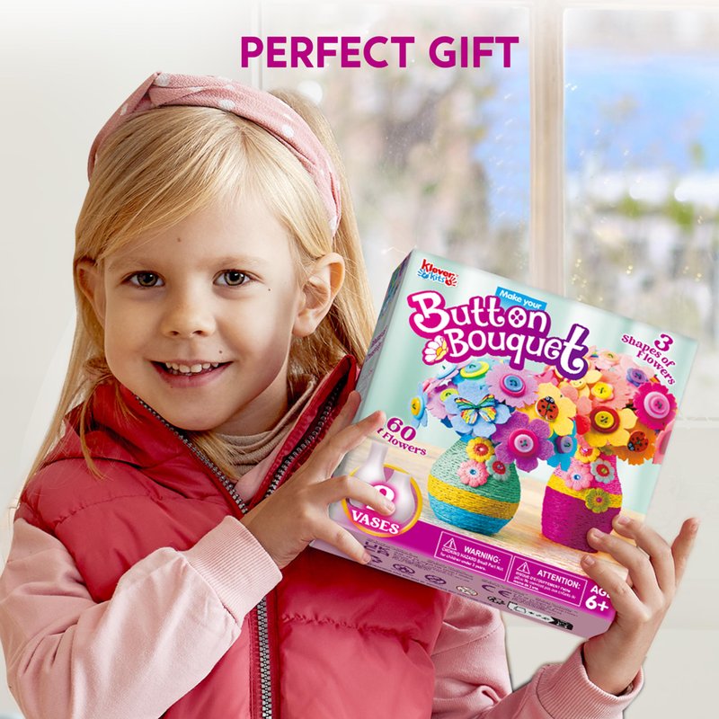 Klever Kits Button Flower Craft with 2 Vases - Make Your Own Flower Bouquet with Button and Felt - DIY Flower Kits Art and Crafts Gift for Birthday Christmas