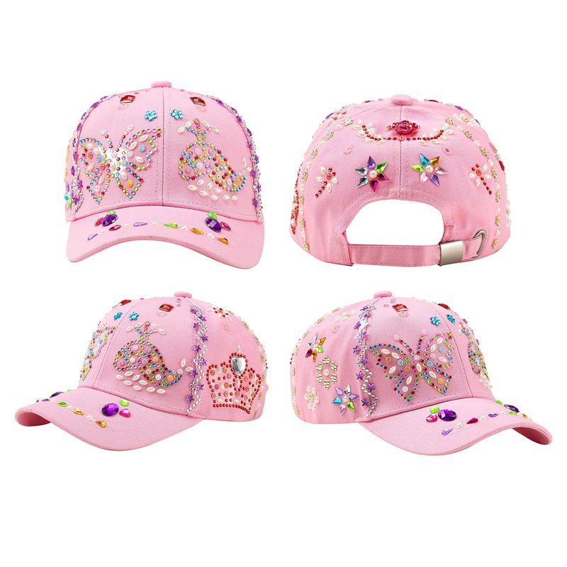- UNIQUE DESIGN. The plain pink-coloured Baseball cap enables kids to imagine tons of diy design ideas that they would like. Kids can simply improve the caps' overall appearance by simply adding adhesive gems and glitter glues. The stickers have built-in adhesives so won't need to add glue in each sticker. After applying the glitter glue, allow it to dry before using it to sit completely in your cap.