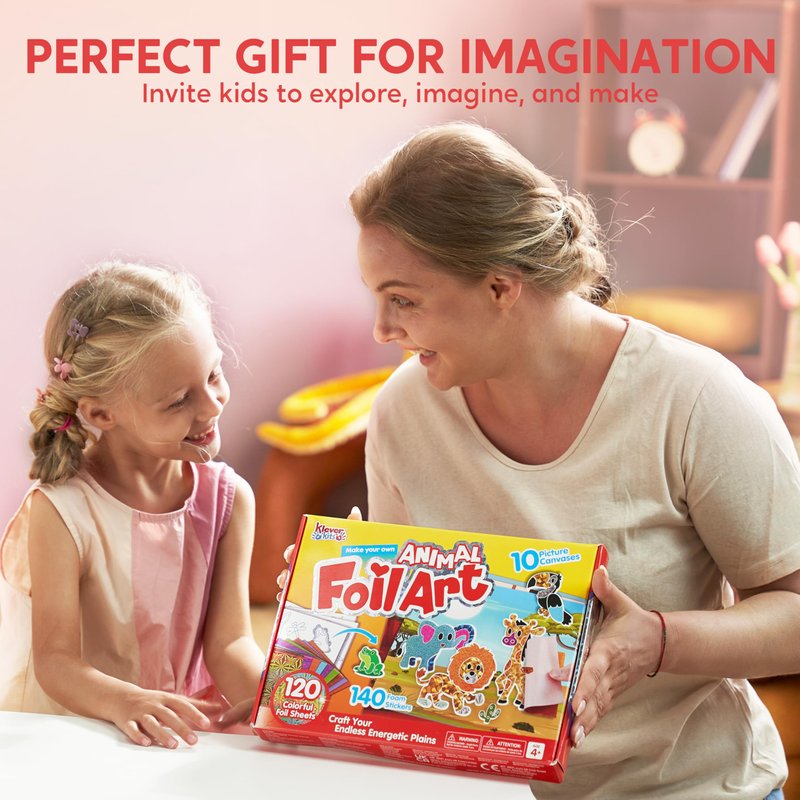 Unleash your creativity with this Foil Art set! Craft your own vibrant scenes using the 120 colorful foil sheets and 140 foam stickers included. With 10 picture canvases, you can let your imagination run wild as you design endless energetic plains filled with lions, frogs, koalas, and more. This engaging art activity is perfect for kids aged 4 and up, fostering artistic expression and fine motor skills. Get ready to bring your artworks to life with this fun and versatile kit!