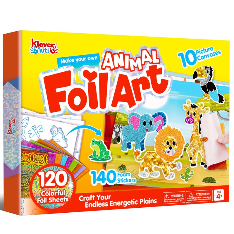 Klever Kits Foil Art Kit for Kids - Arts & Crafts Supplies, Mess Free Coloring, Animal Foil Foam Stickers, Creative Travel Toys, Birthday Gifts for Boys & Girls Ages 4 and Up