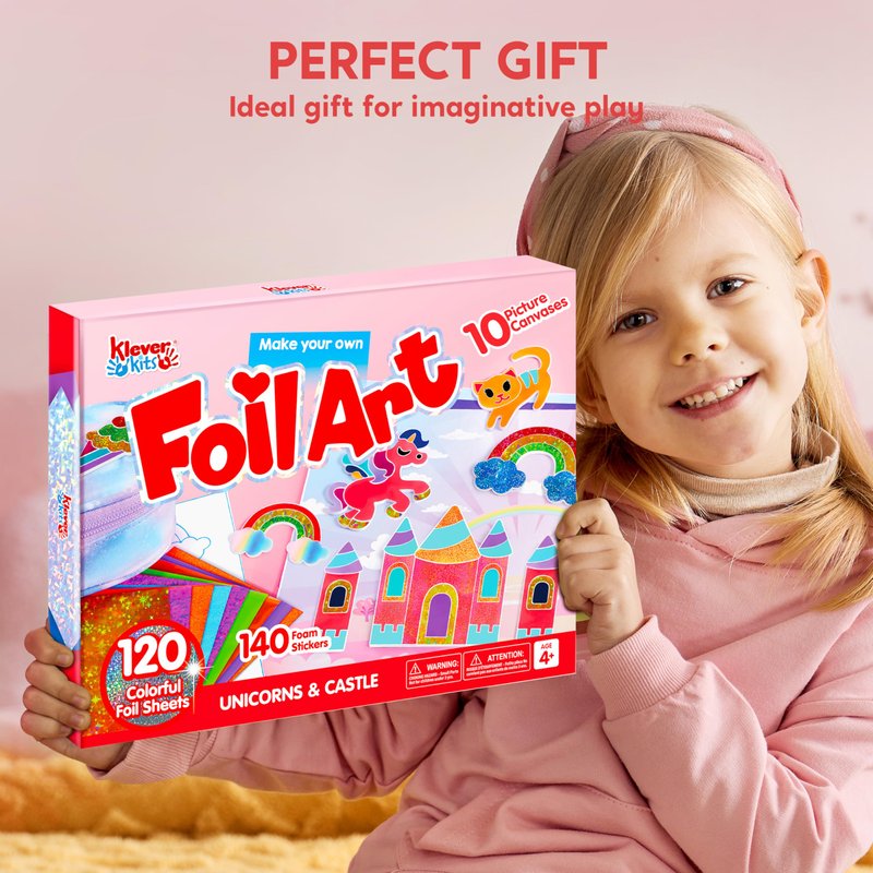 Klever Kits Foil Art Kit for Kids - Arts & Crafts Supplies, Mess Free Coloring, Foil Foam Stickers, Creative Travel Toys, Birthday Gifts for Boys & Girls Ages 4 and Up