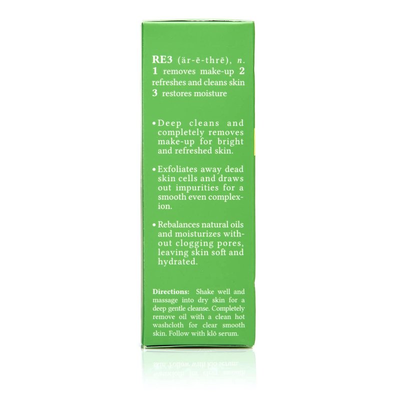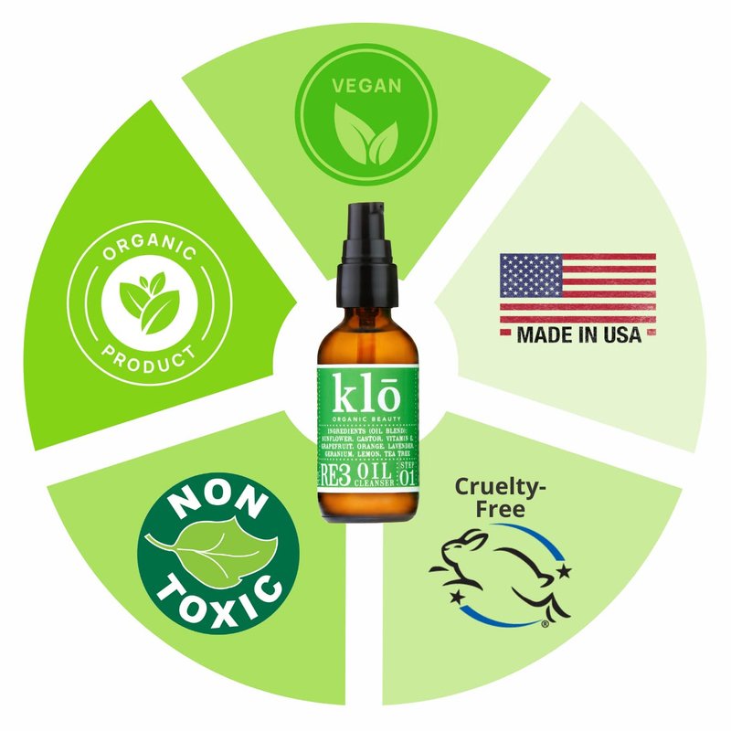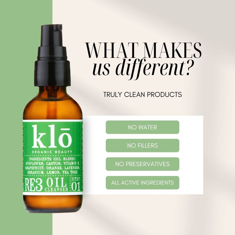 Klo Organic Beauty RE3 Oil Cleanser for Acne-Prone Skin, Anti-Aging Ingredients, Clear Smooth Skin, All-Natural, The Oil Cleansing Method, Grapefruit, Lavender, Tea Tree Oil
