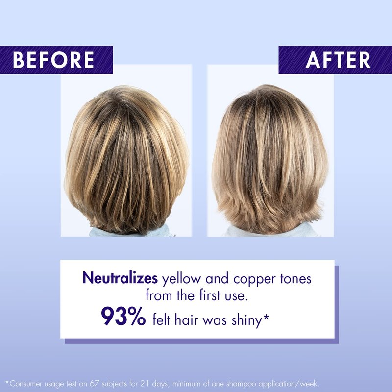 - Neutralizes unwanted yellow and copper tones in blonde, platinum, silver, gray or white hair
