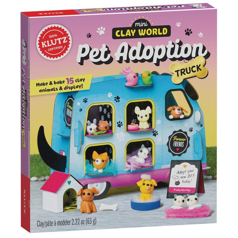 Klutz Mini Clay World Pet Adoption Truck Craft Kit for 8-12 years includes 8 punch-out sheets, 7 colors of oven-bake clay, faux fur blankets in 3 colors, 30 brads